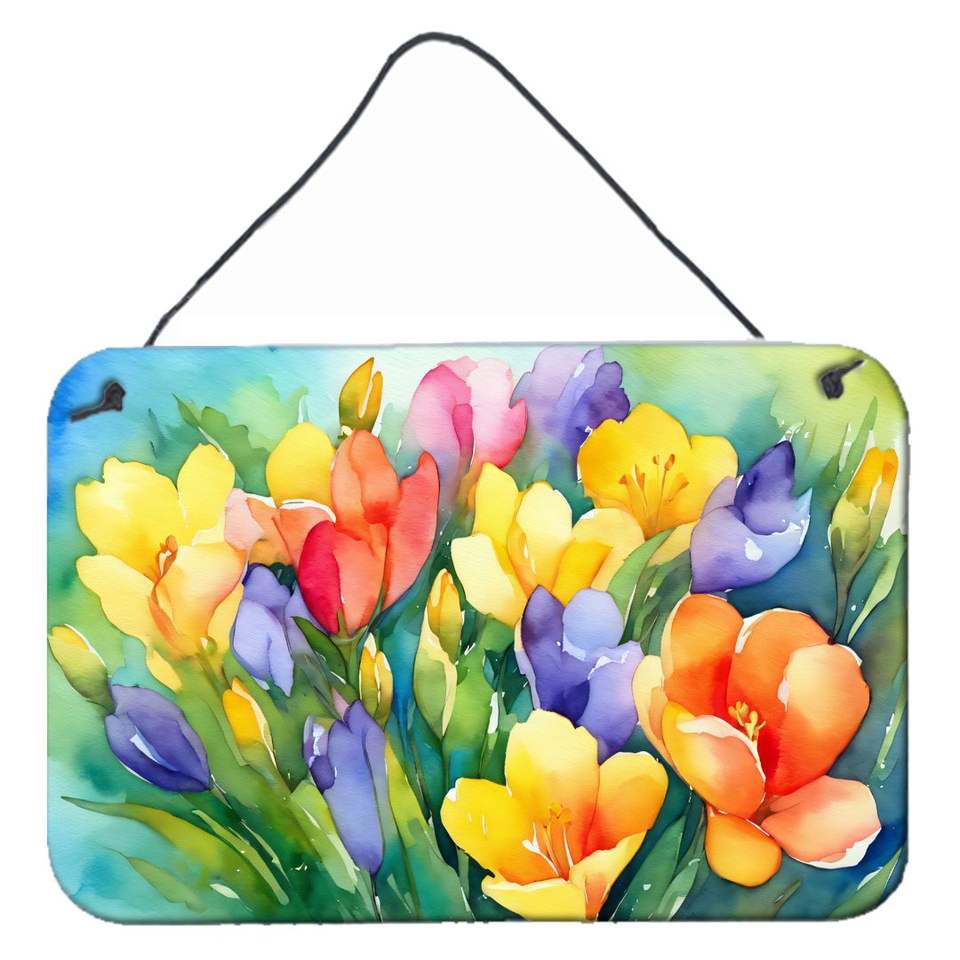 Multicolor Freesias Watercolor Wall Hanging Prints New Aluminum Metal Sign for Kitchen Bar Bathroom Plaque Home Decor 8HX12W