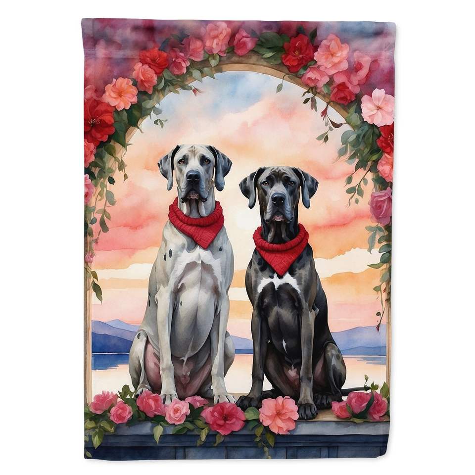 Multicolor Great Dane Two Hearts Garden Flag Decorative Yard Banner for Patio Artwork for Flower Beds and Mailbox Decor