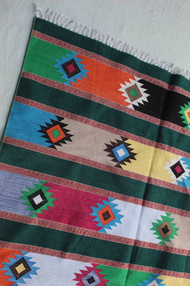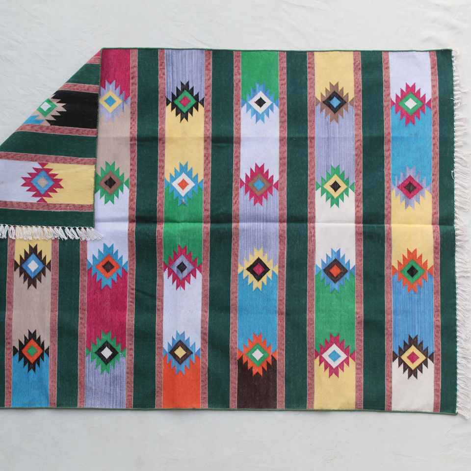 Multicolor Handwoven Cotton Dhurrie Geometric Stripe Pattern Washable Decorative Flatweave Rug Indian Artisan Made