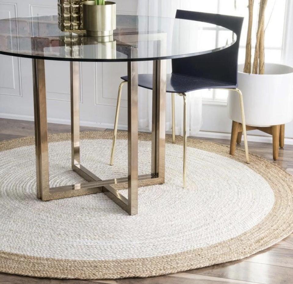 Multicolor Handwoven Jute Rug with Geometric Pattern Eco-Friendly Bohemian Natural Fiber Carpet for Living Room, Bedroom & Ent