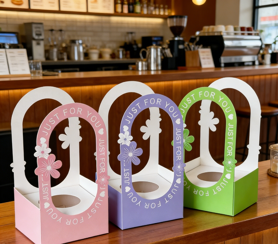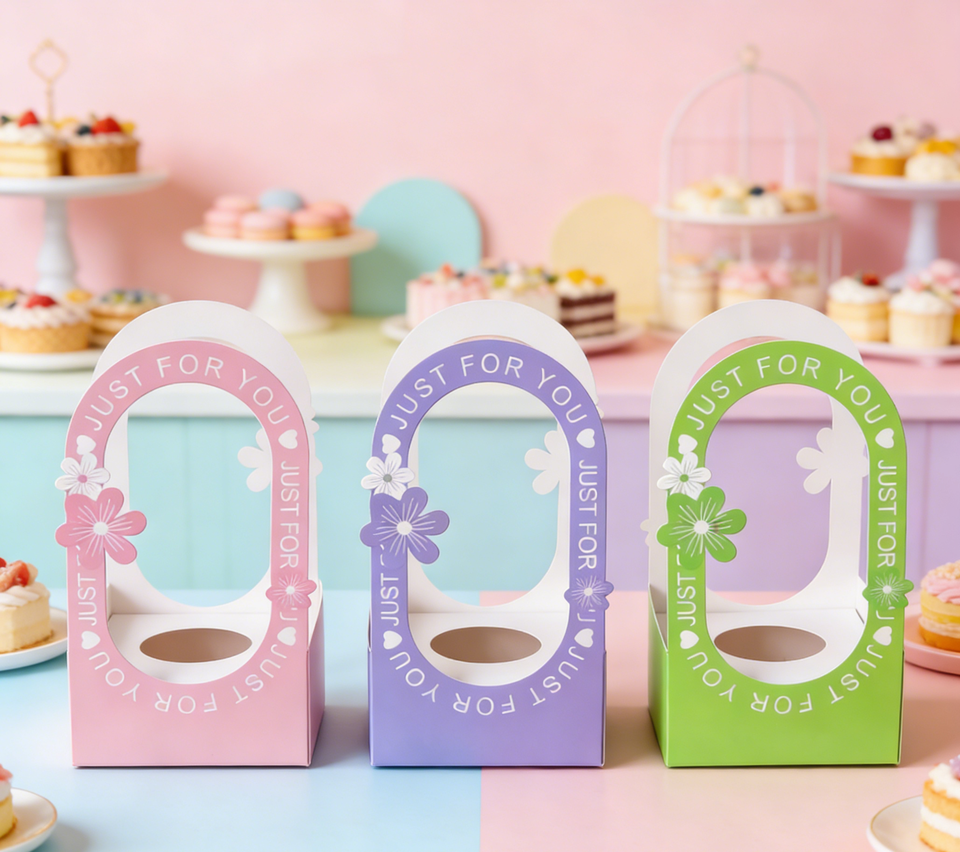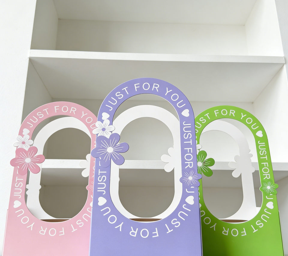 Multicolor Eco-Friendly Hollow Handle Gift Box with Matt Lamination & Gold Foil Custom Size High-End Thick White Cardboard