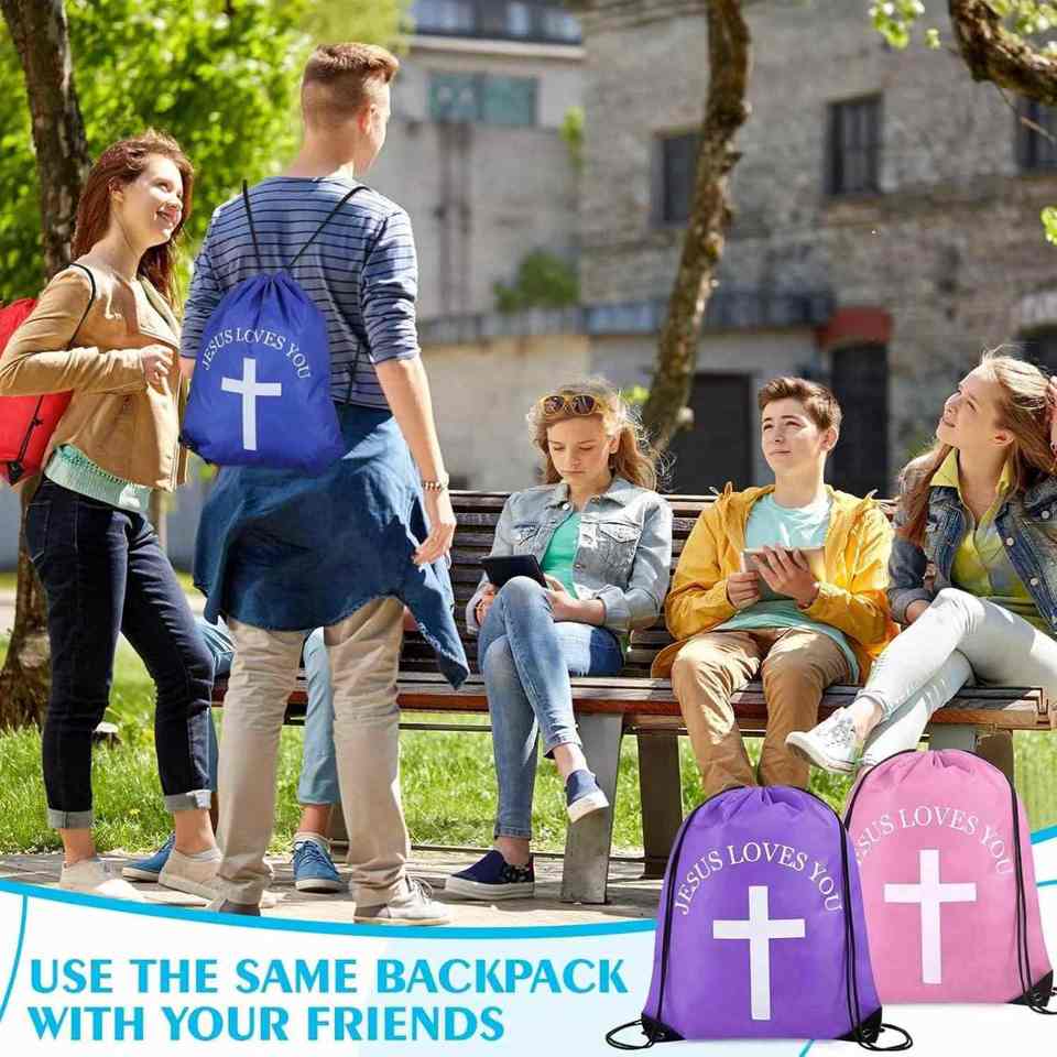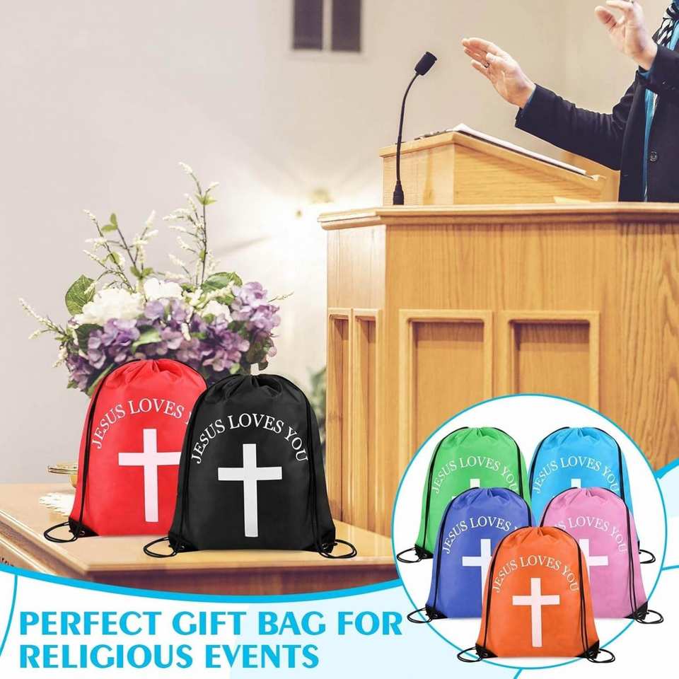 Multicolor Jesus Loves You Drawstring Backpack Bulk Easter Church Gifts Christian Religious Polyester Gift Bag