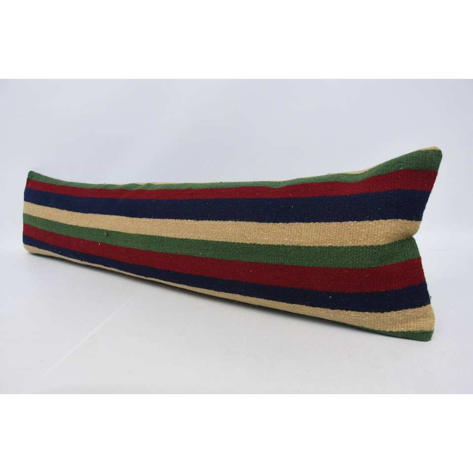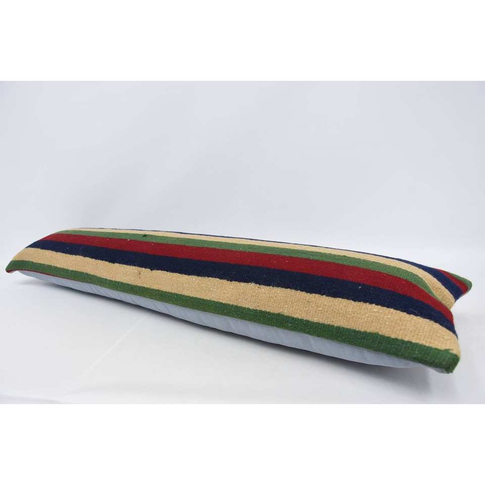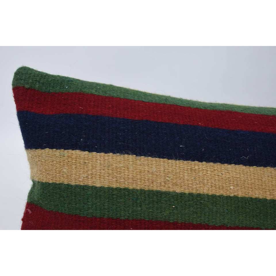 Multicolor Kilim Patchwork Wool Pillow 12x48 Inches Subtle Striped Vintage Leaves Decorative Cushion for Sofa Woven Technique