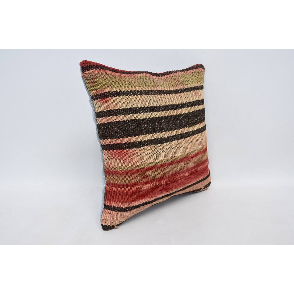Multicolor Kilim Patchwork Wool Pillow 14x14 Inches Luxurious Fluffy Woven Vintage Square Leaves Design Decorative Cushion