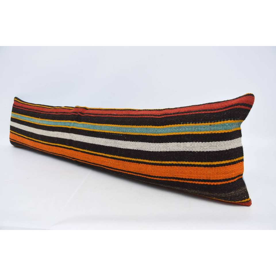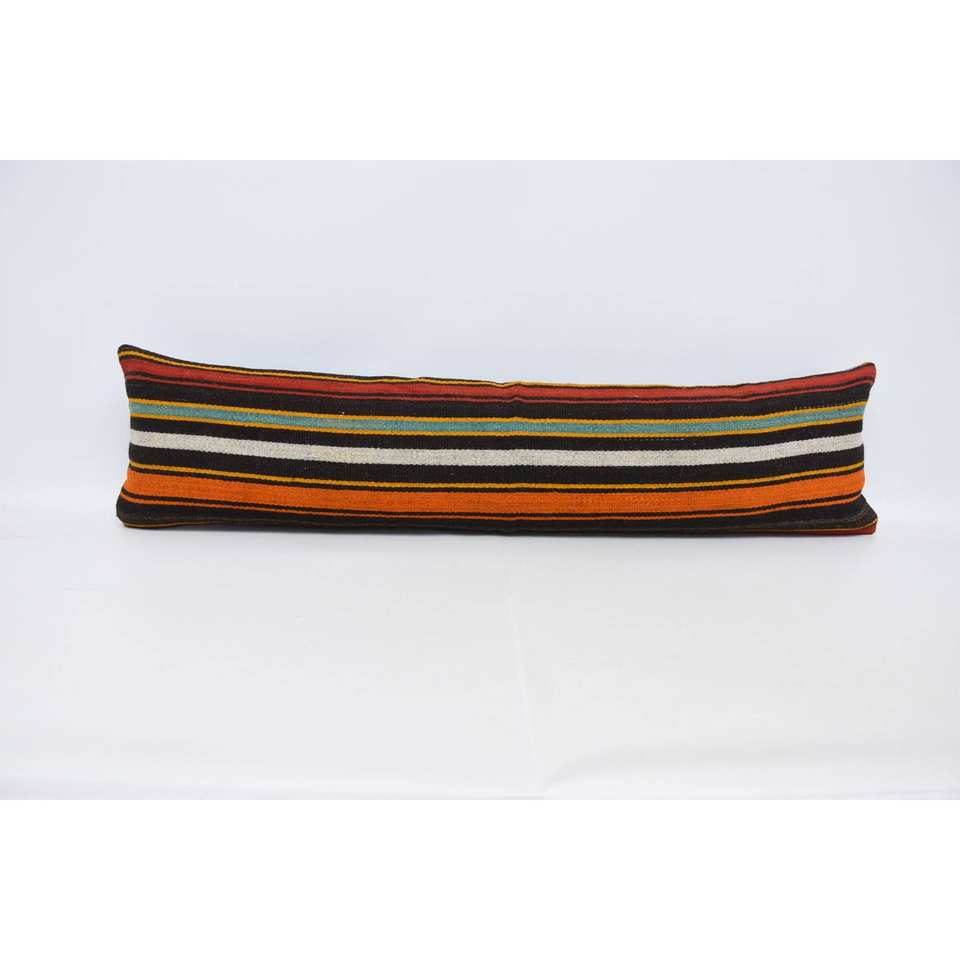 Multicolor Kilim Striped Wool Pillow 12x48 Inch Luxury Decorative Accent Cushion Woven Vintage Pattern Portable