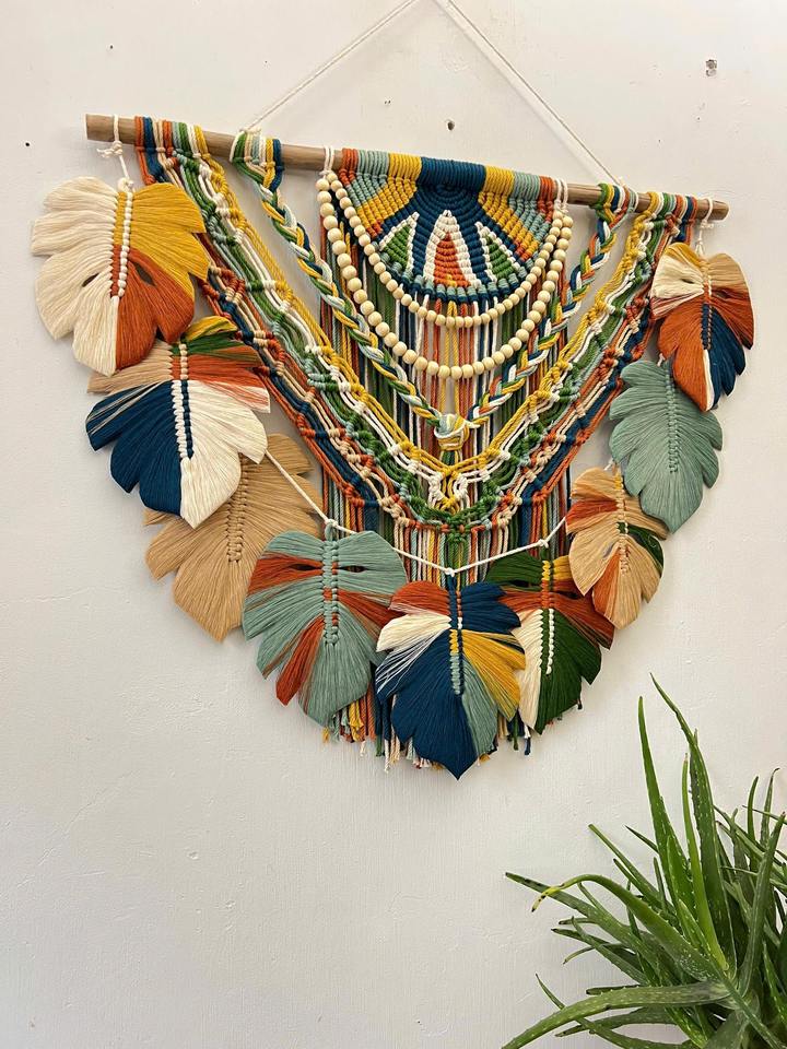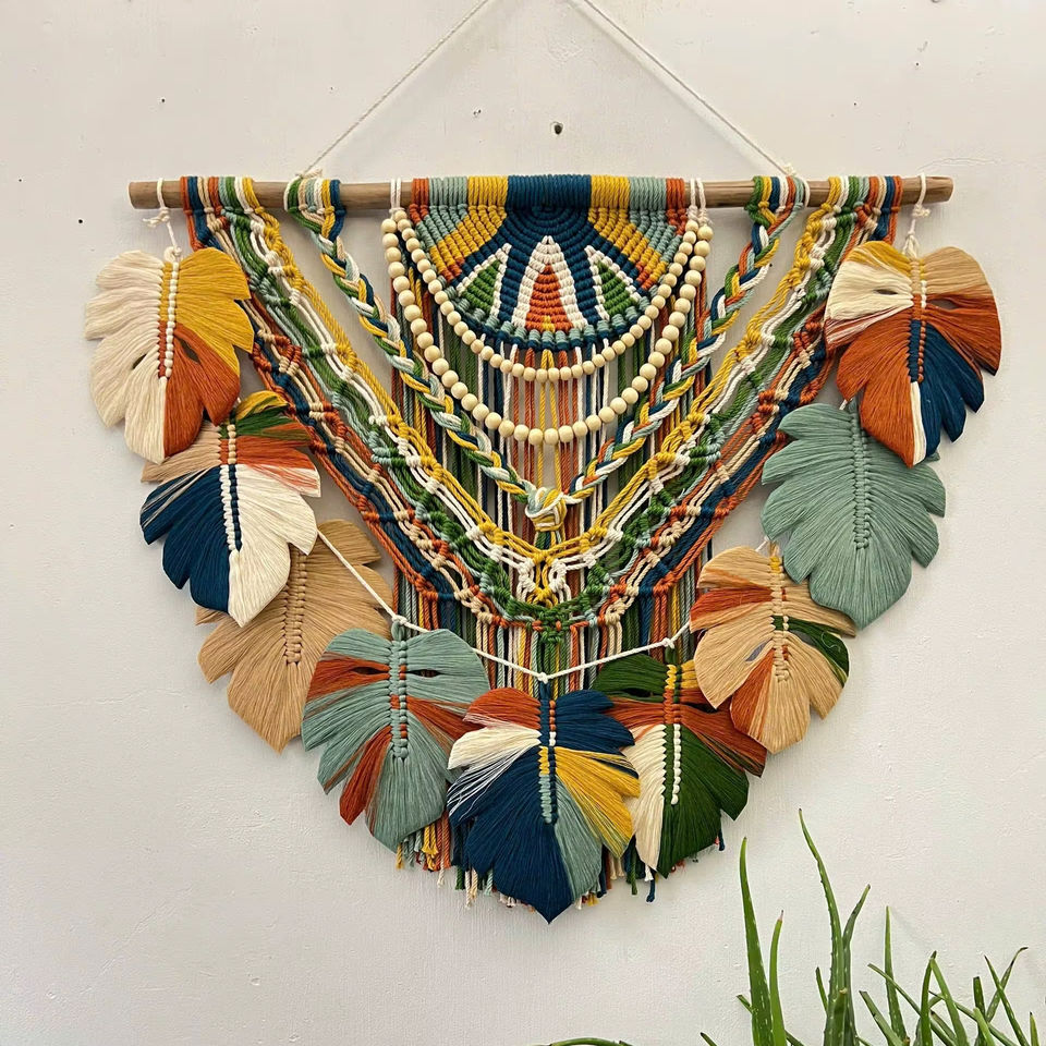 Multicolor Leaf Pattern Macrame Wall Hanging For Aesthetic Wall Decor Creative Fibre Art And Home Styling Wholesale From India