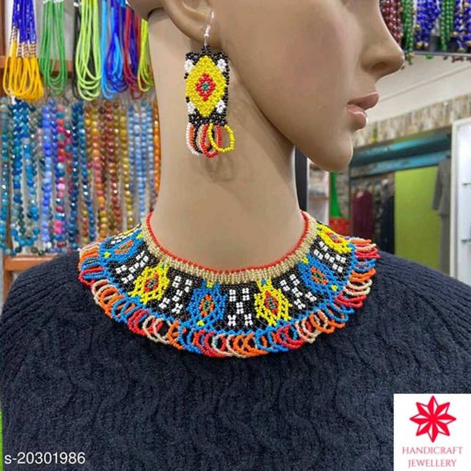 Multicolor Necklaces Sets Handmade Trendy Small Seeds Beaded Jewellery for Women and Girls Wear in Wedding Party Wear