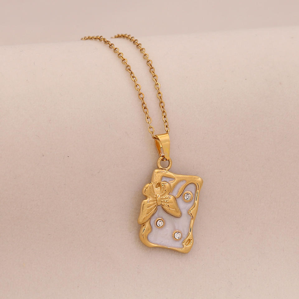 Multicolor Oil-Drop Butterfly Pendant Necklace Stainless Steel Collar Chain Fashionable Cross-Border Jewelry Main Zircon Copper