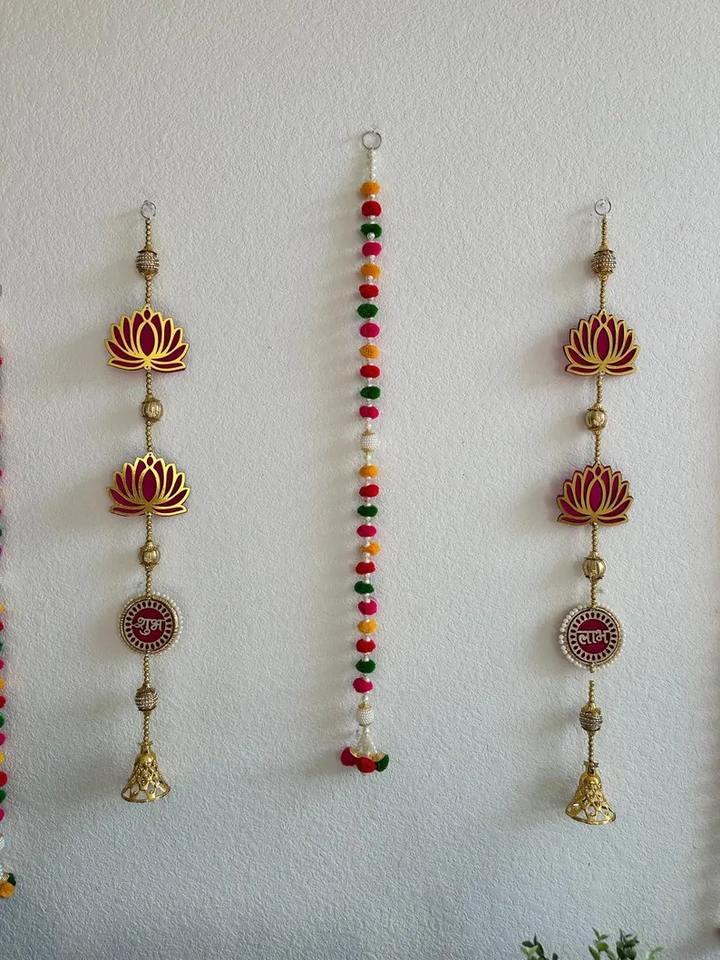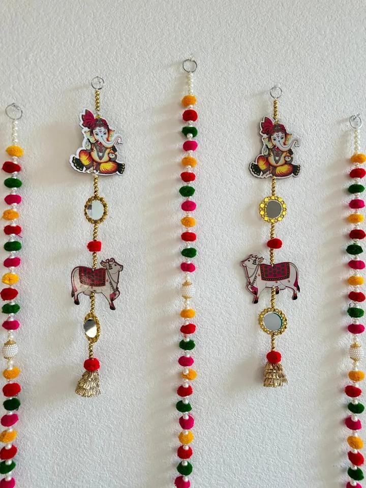 Product Name:Assorted Pom Pom MDF Lotus Cow Ganesha Hanging Set