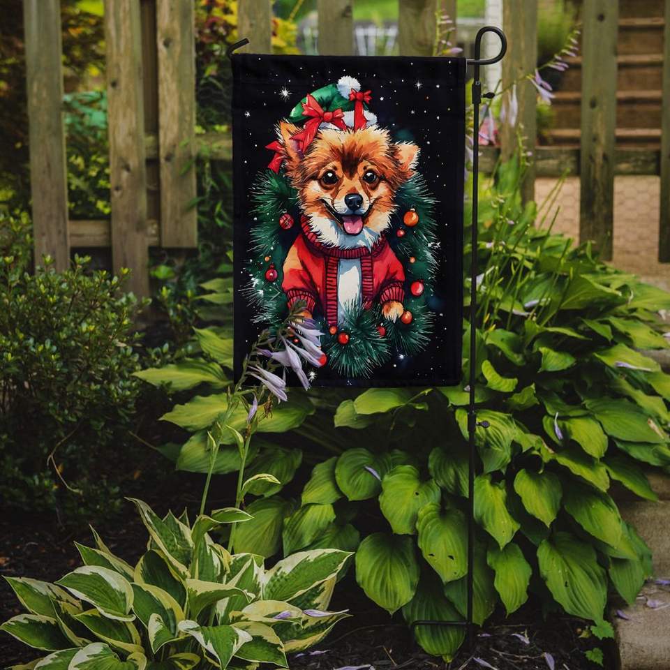 Multicolor Pomeranian Christmas Garden Flag Decorative Yard Banner for Patio Artwork for Mailbox & Flower Beds