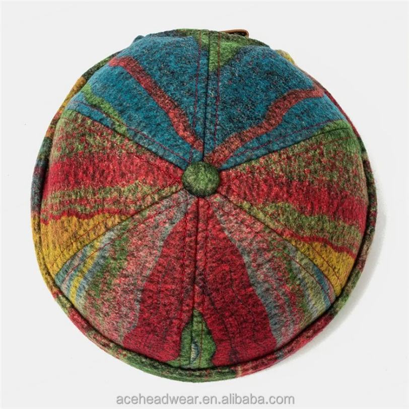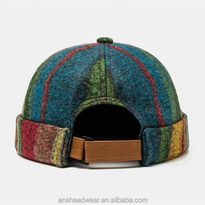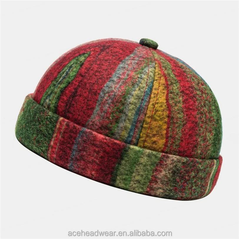 Multicolor SKull Caps Striped Plush Soft Fabric Wavy Pattern Brimless Hats With Folk
