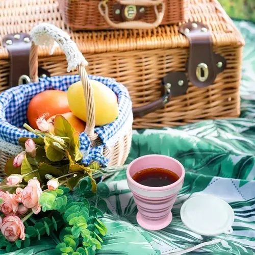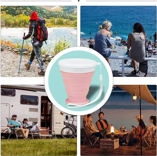 Multicolor Silicone Folding Cup Measuring Lines Connective Hand Rope 200ML Resizable Drinkware Travel Camping Hiking Sports