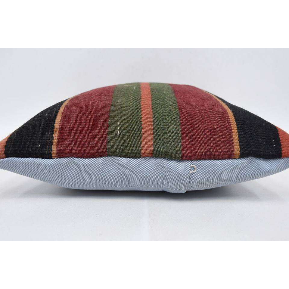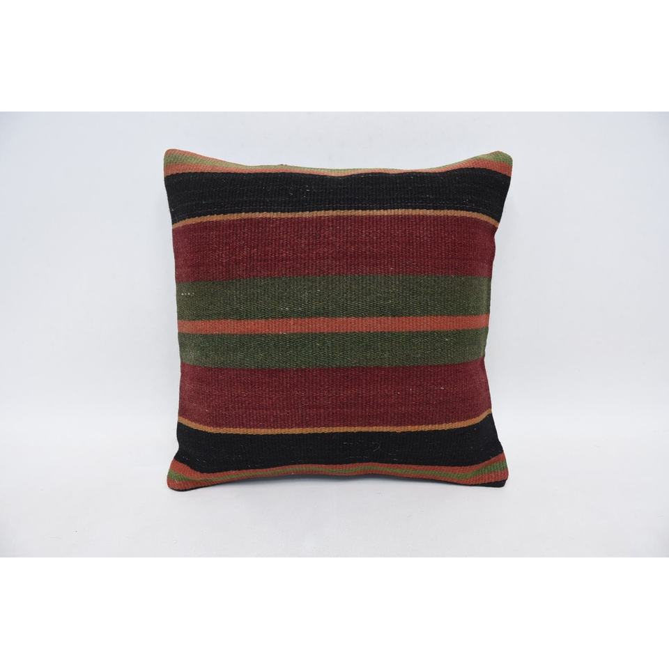Multicolor Tartan Pattern Wool Kilim Patchwork Pillow 14x14 Inch Fluffy Vintage Leaves Design Cushion Woven Decorative Cushion