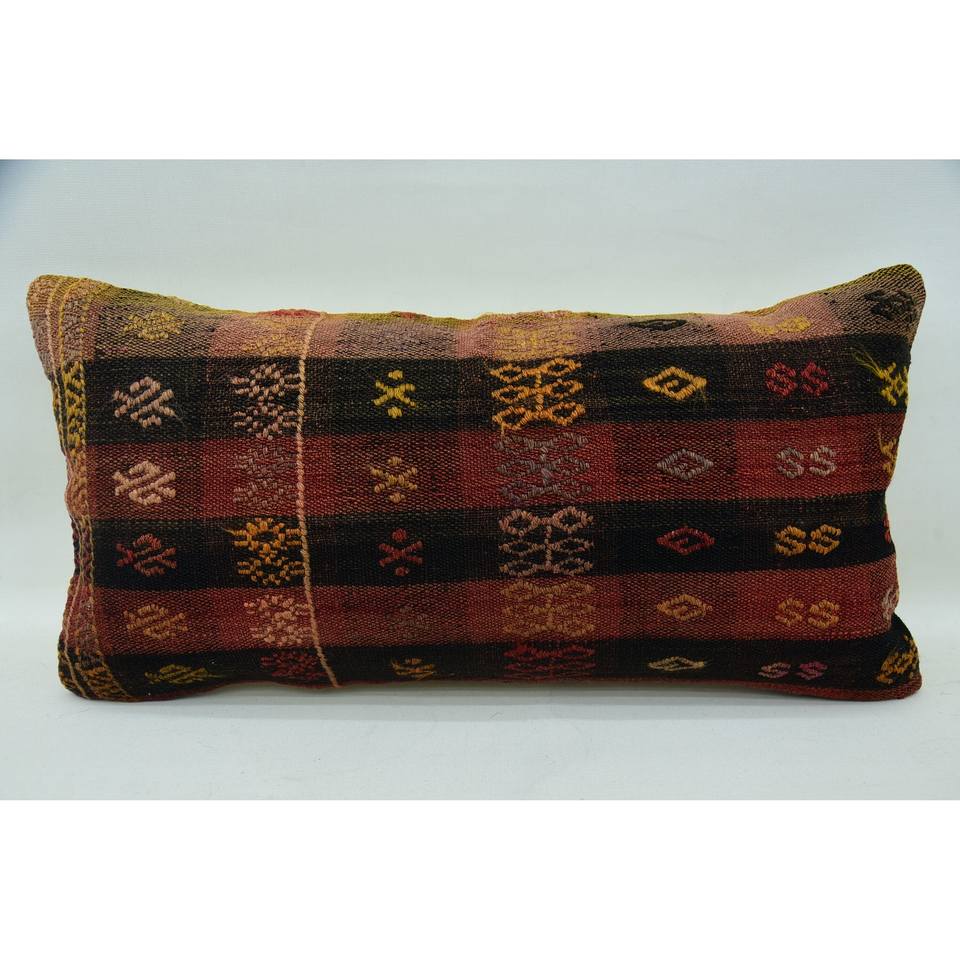 Multicolor Tartan Wool Kilim Pillow 12x24 Inch Luxury Woven Throw Pillow with Vintage Leaves Pattern for Sofas
