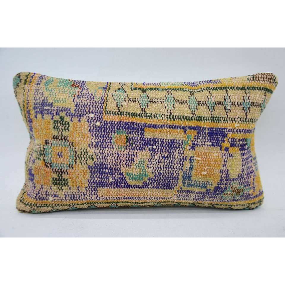 Multicolor Wool Kantha Pillow 12 X 20 Inches Patchwork Mosaic Paisley Paneled Woven in Vintage Style