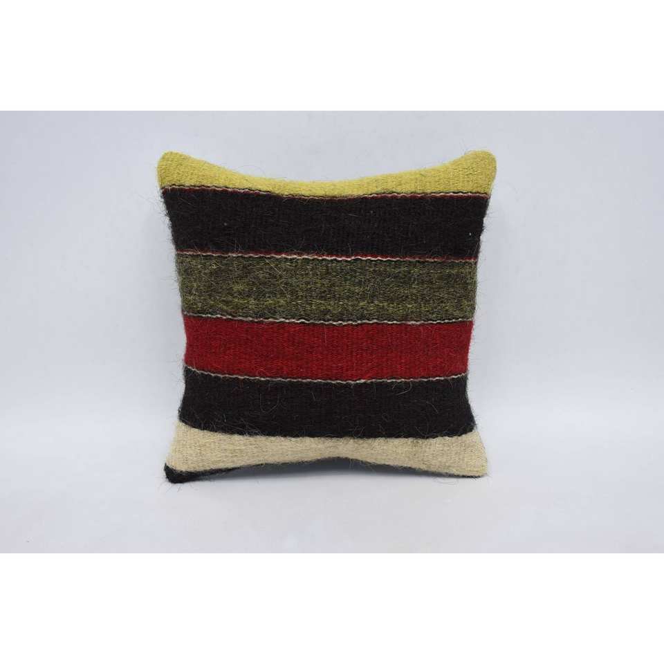 Multicolor Wool Kilim 18x18 Inch Luxury Decorative Accent Pillow Woven Vintage Pattern Leaves 12x12 Inverted Patchwork Cushion