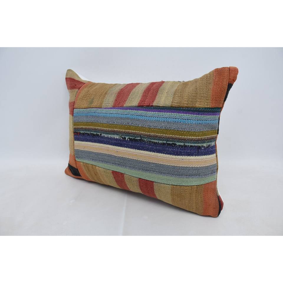 Multicolor Wool Kilim 20x28 Inch Decorative Accent Pillow Luxury Woven Cushion with Vintage Leaves Pattern