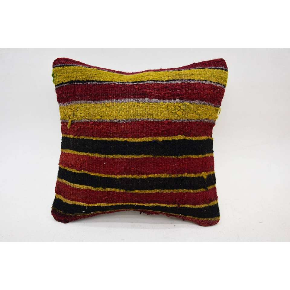 Multicolor Wool Kilim Patchwork Pillow 12x12 Inches Subtle Striped Pattern Vintage Leaves Decorative Cushion for Sofa