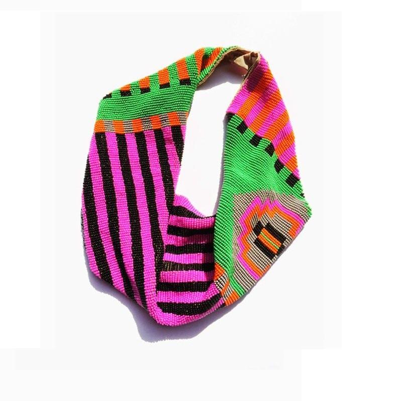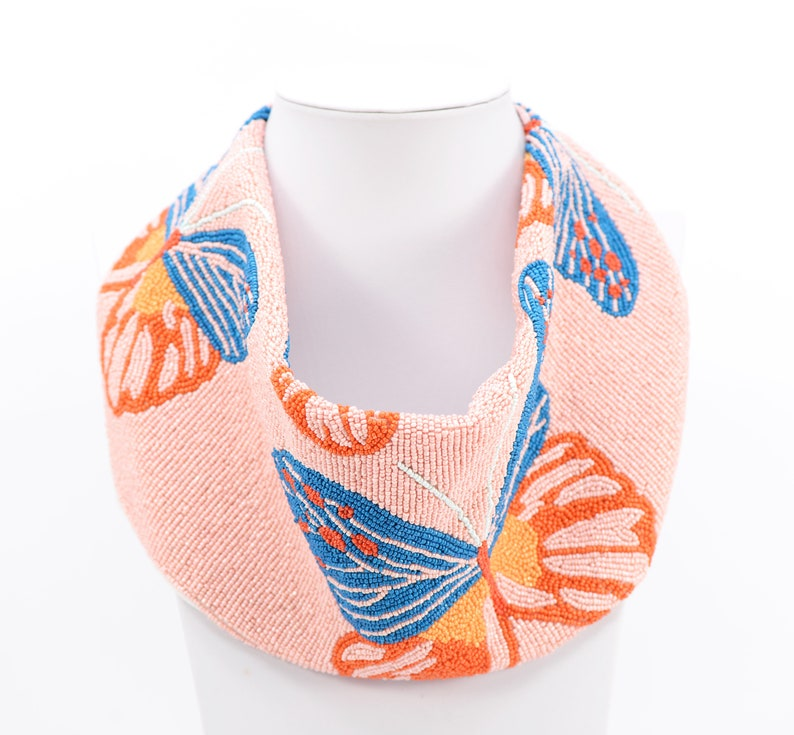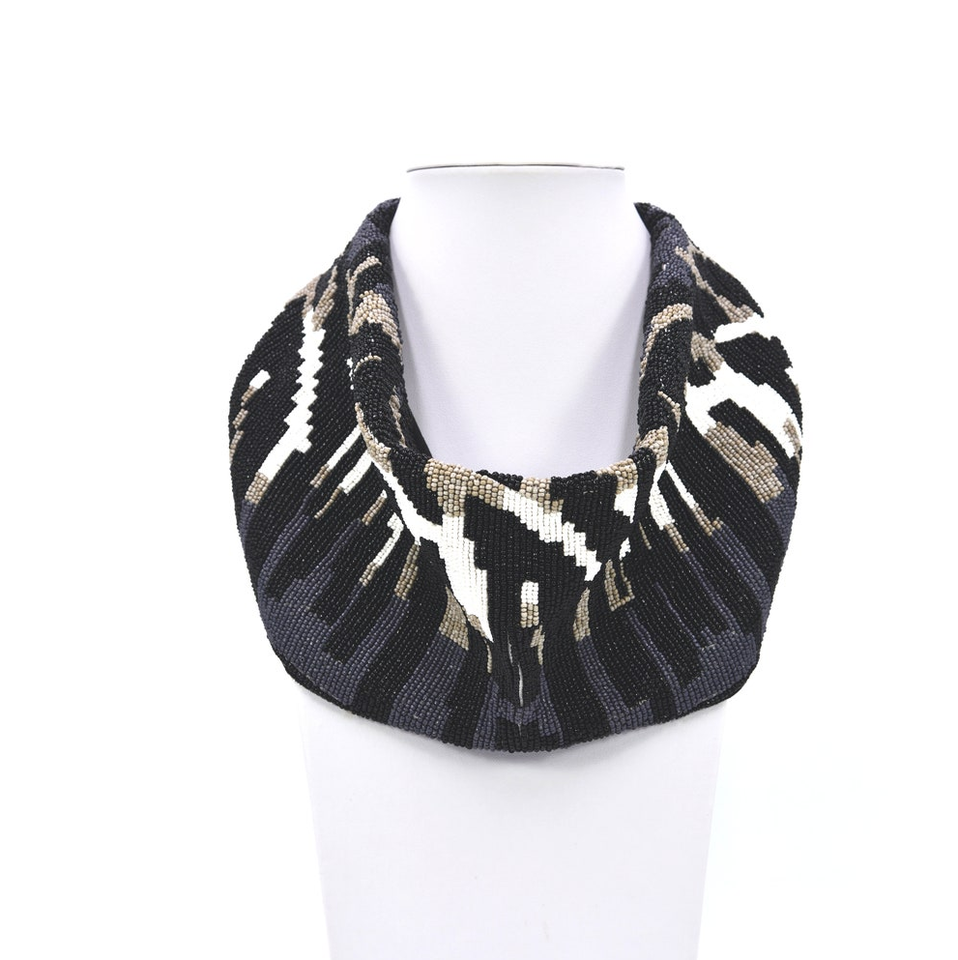 Multicolor Seed Beads and Embroidery Scarf Necklaces with Bohemian Designs Embroidered Seed Beaded Scarf Necklace