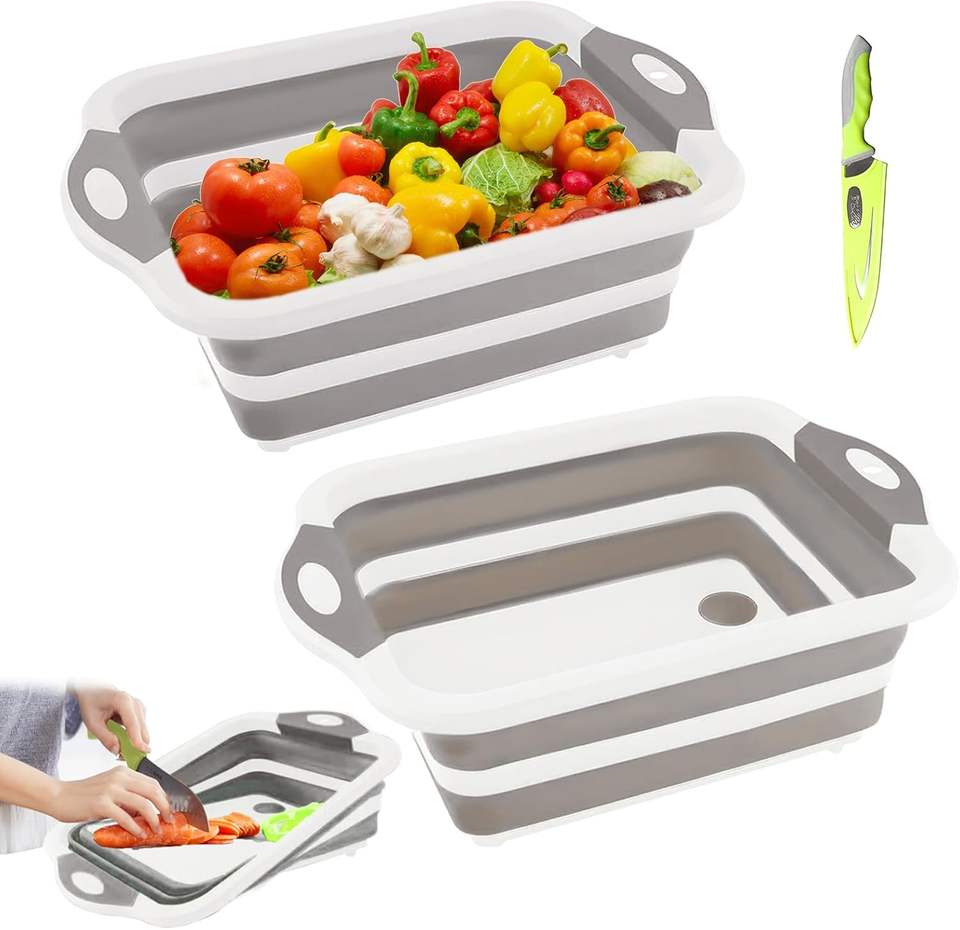 Multifanctional Portable 2 in 1 Foldable Folding Collapsible Plastic Cutting Chopping Cutting Board With Washing Basket