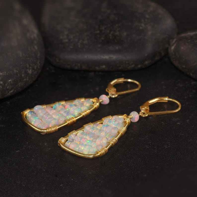 Multifire White Opal Dangle Earrings For Her Natural White Fire Opal 925 Sterling Silver 14k Gold Plated Delicate Gift
