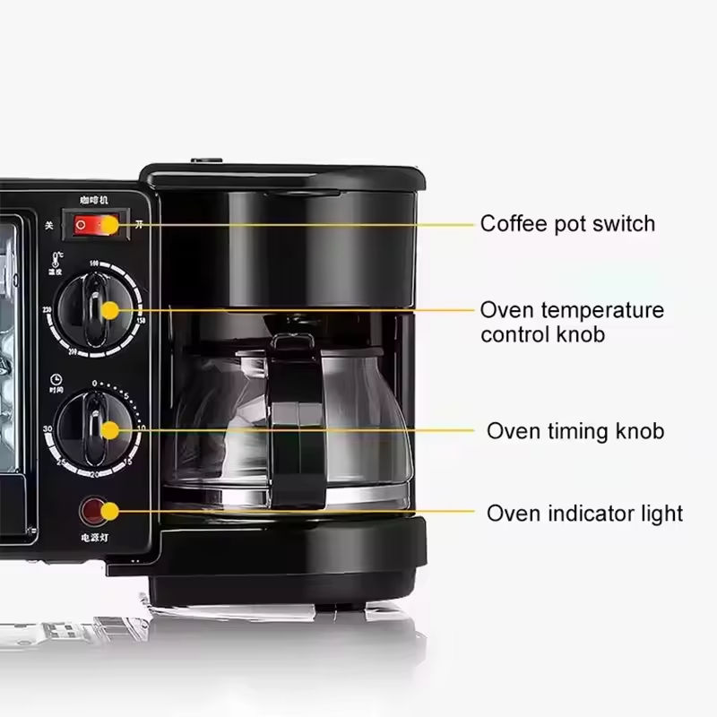 Multifunction Electric Breakfast Maker Fry Pan Coffee Machine Toaster Oven