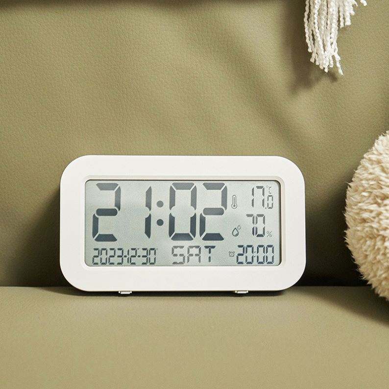 Multifunction LCD Alarm Clock Student Watch Square Battery Powered Simple Touch Luminous Moon Phase Display 24-Hour Clock