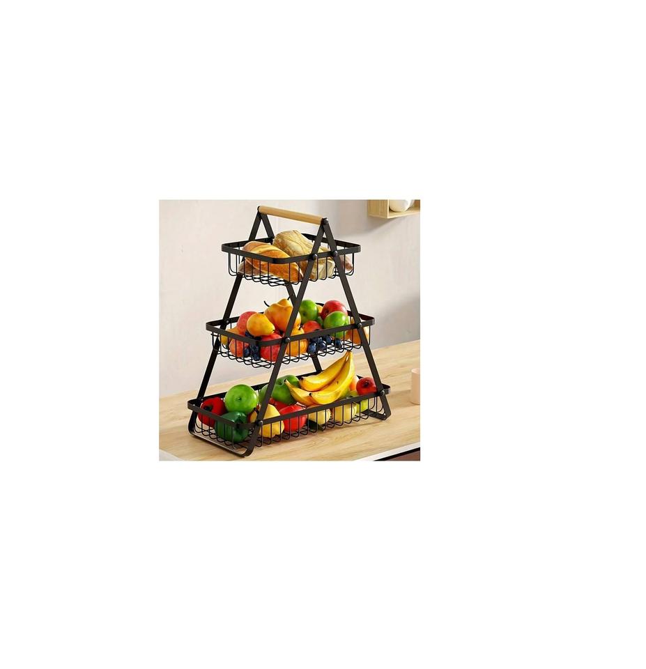 Multifunctional 3-Tier Detachable Metal Fruit Basket with Portable Handle Breathable Wire Mesh Produce Storage Stand for Fruits