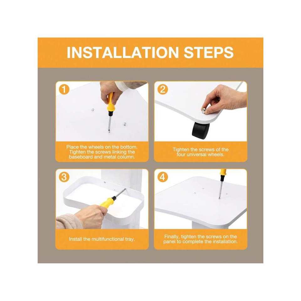 Multifunctional 88lbs White Salon Trolley Convenient Rolling Hair Instrument Tray for Beauty Salons Hairdressers Spas Hospitals