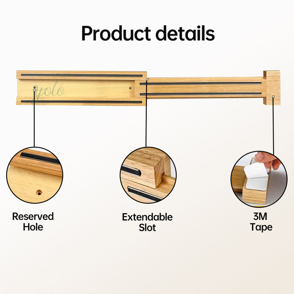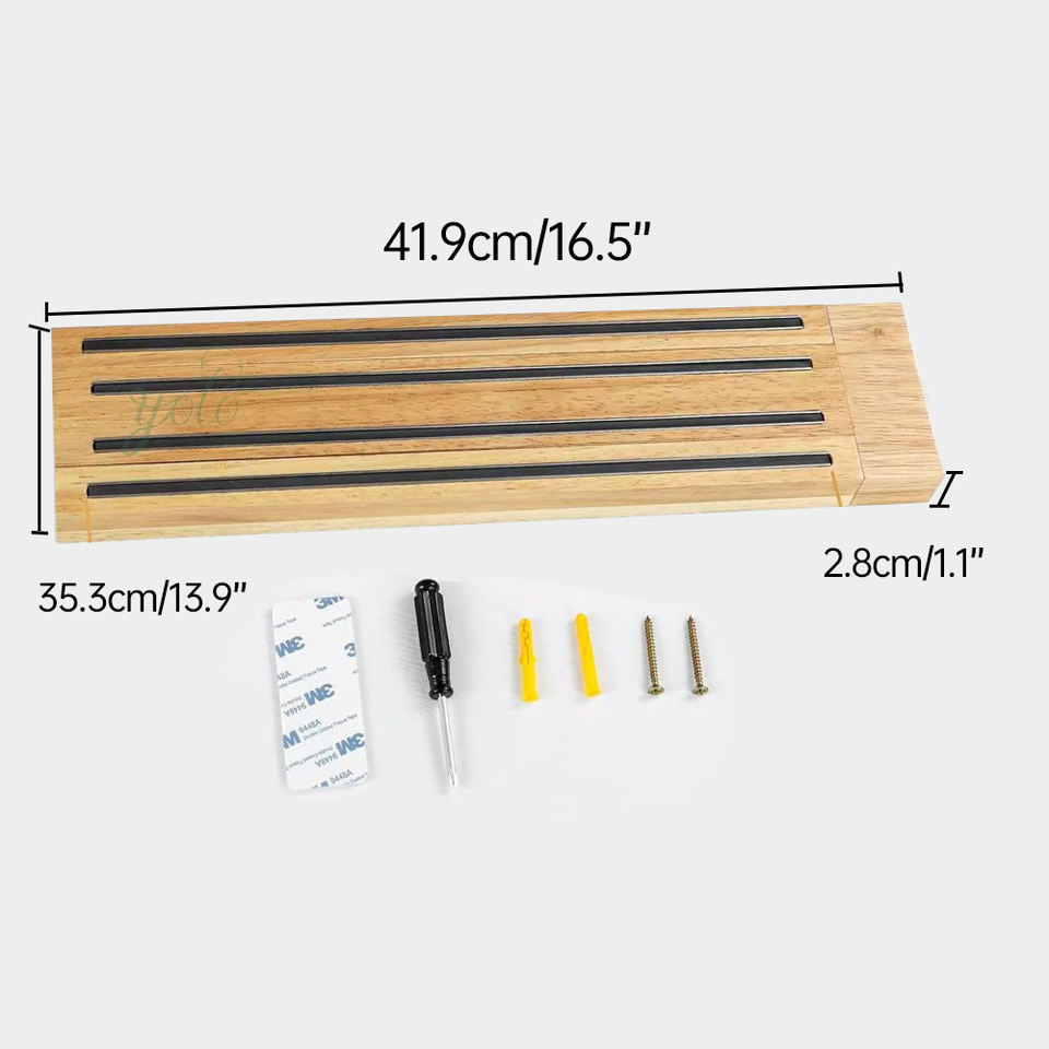 Multifunctional Bamboo Wood Magnetic Knife Holder Wooden Permanent Removable Wall Mount Standing for Home Kitchen Storage