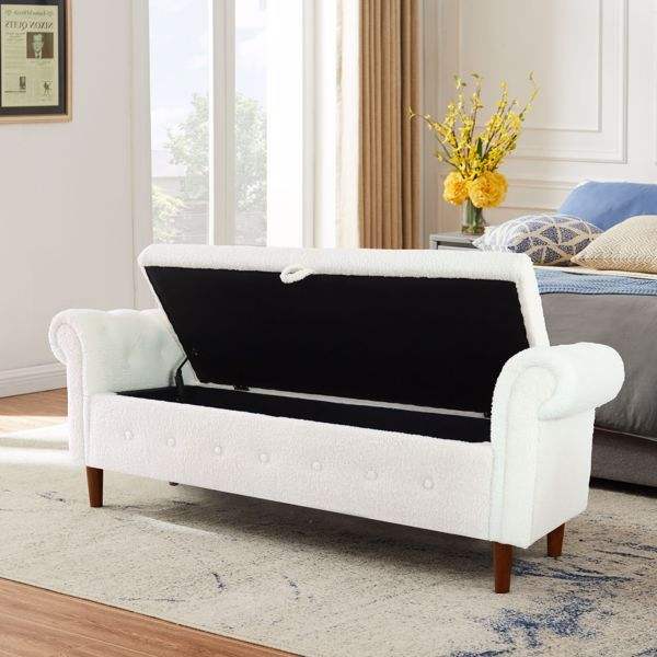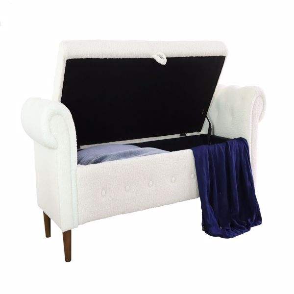 Multifunctional Beige Rectangular Sofa Stool for Bedroom Storage and Comfort