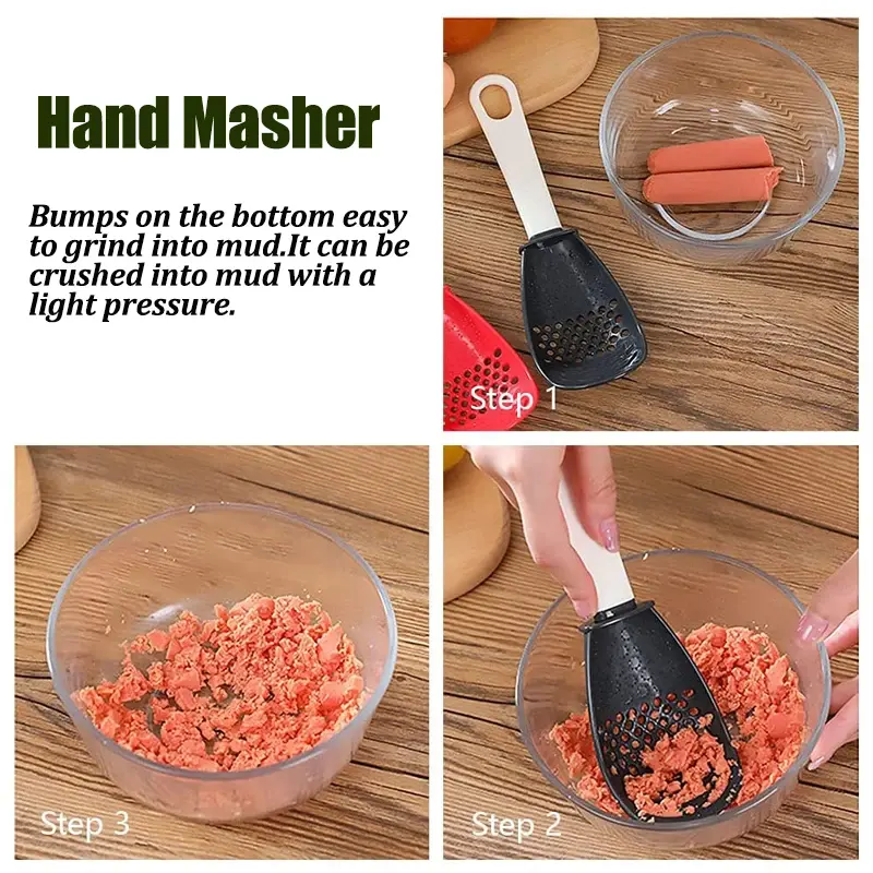 Multifunctional Cooking Spoon Household Kitchen Strainer Scoop Heat-resistant Hanging Hole Potato Garlic Press Colander Tool