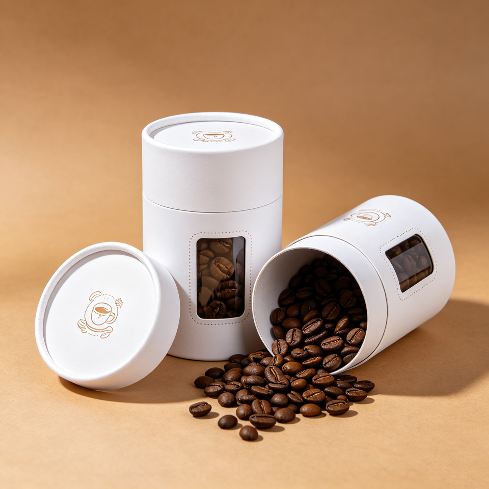 Multifunctional Cylindrical Cardboard Tube Visual Window Custom Made Box For Coffee Bean Brand Pack