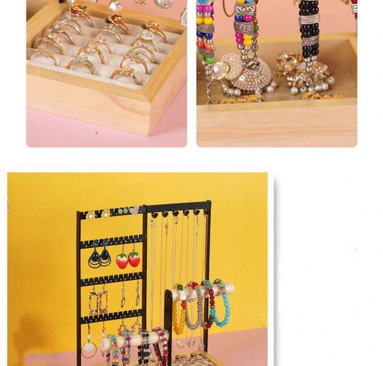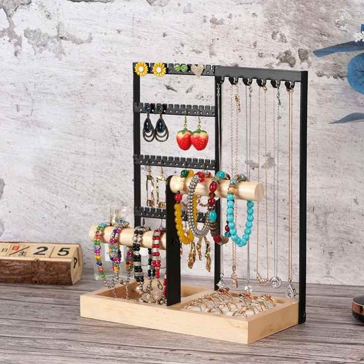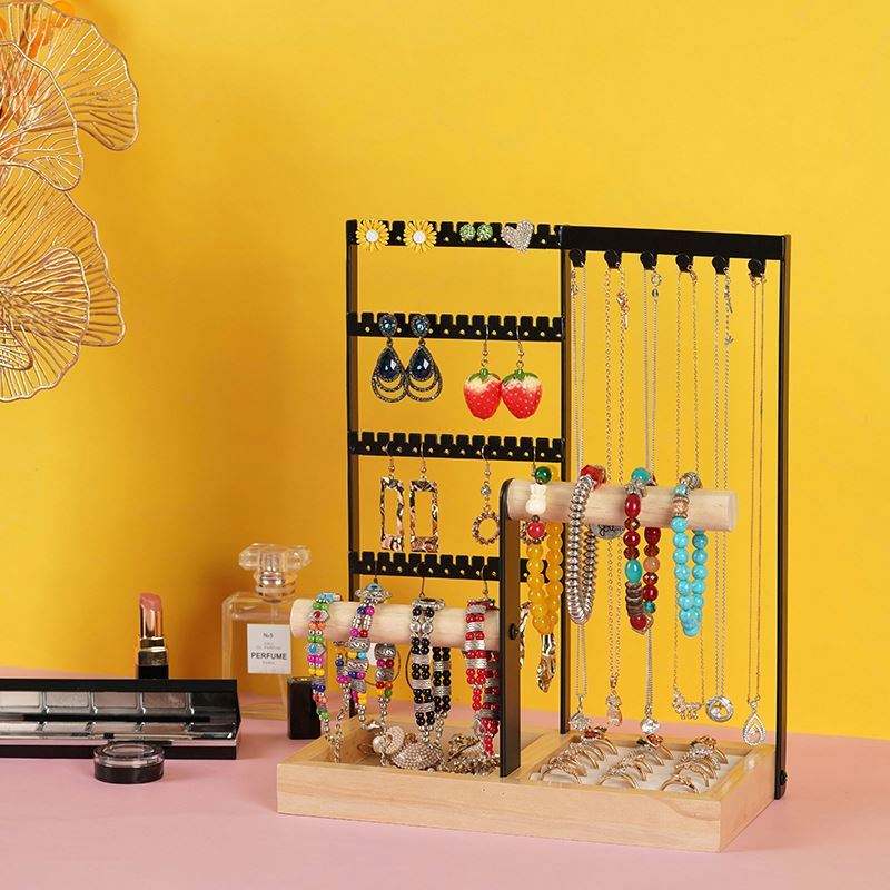 Multifunctional Detachable Wooden Bottom Jewelry Rack for Earrings Necklaces Rings Bracelets & Watches Women's Accessory Storage