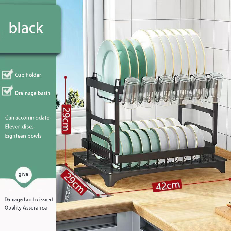 Multifunctional Dish Rack Rustproof Over Sink Dish Drain Rack Space-Saving 2-Tier Dish Drying Rack with Utensil Holder