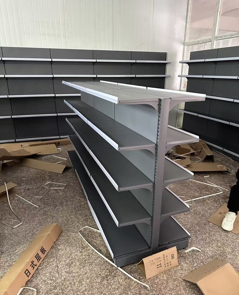 Multifunctional Double-Sided Retail Display Racks Heavy-Duty Supermarket Shelves Made of Durable Steel and Metallic Material