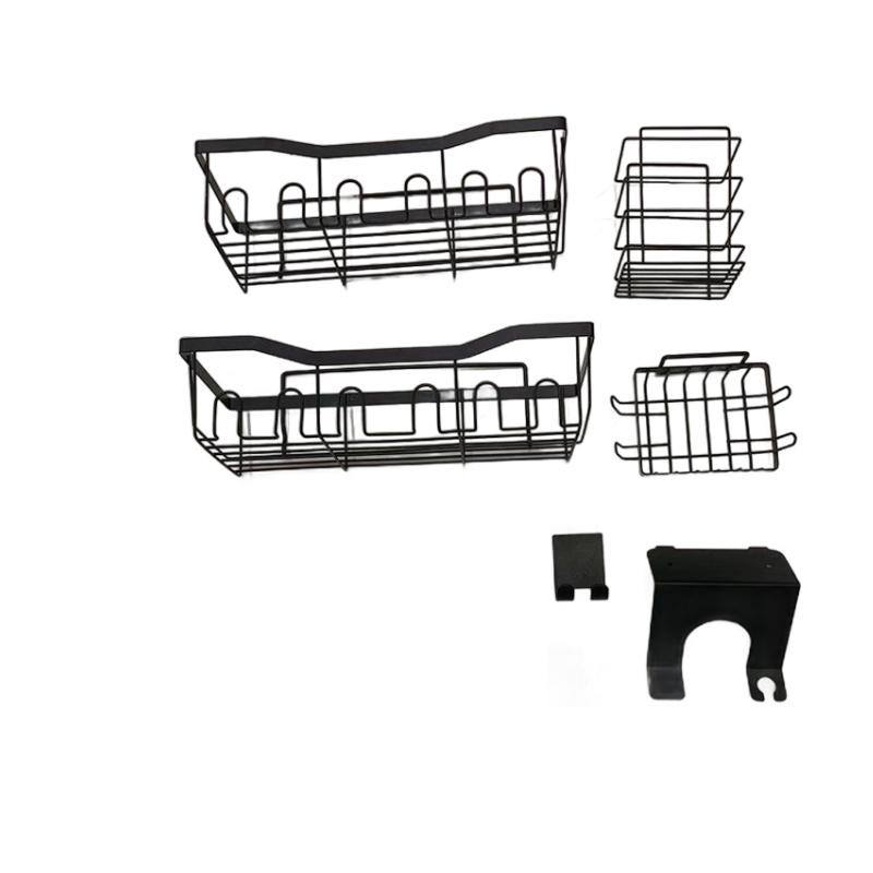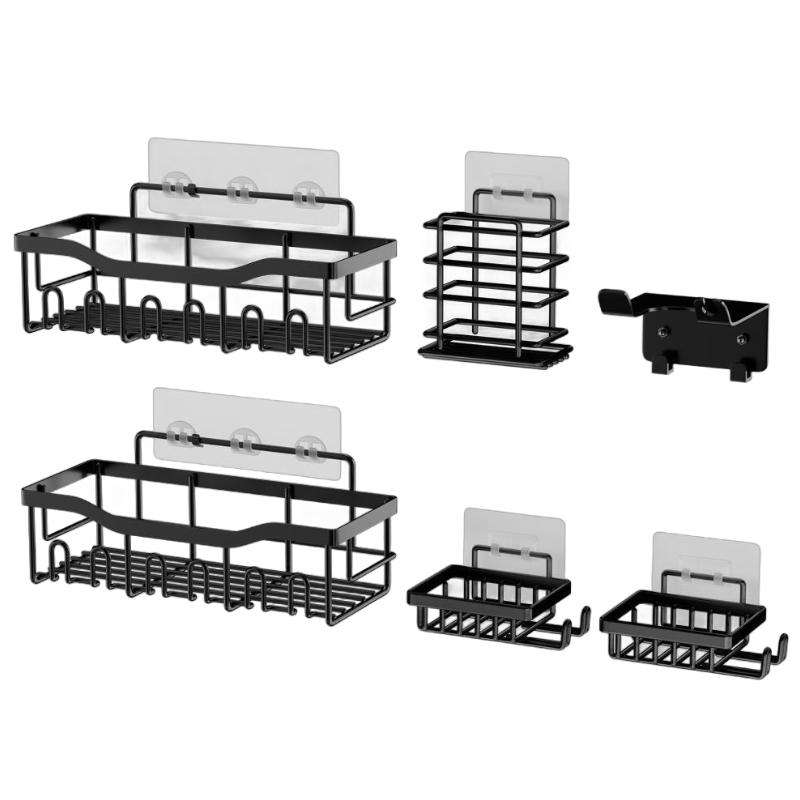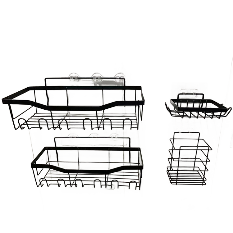 Multifunctional Easy Install Black Iron Art Bathroom Shower Caddy No Drill Wall Mounted Modern Style Corner Design
