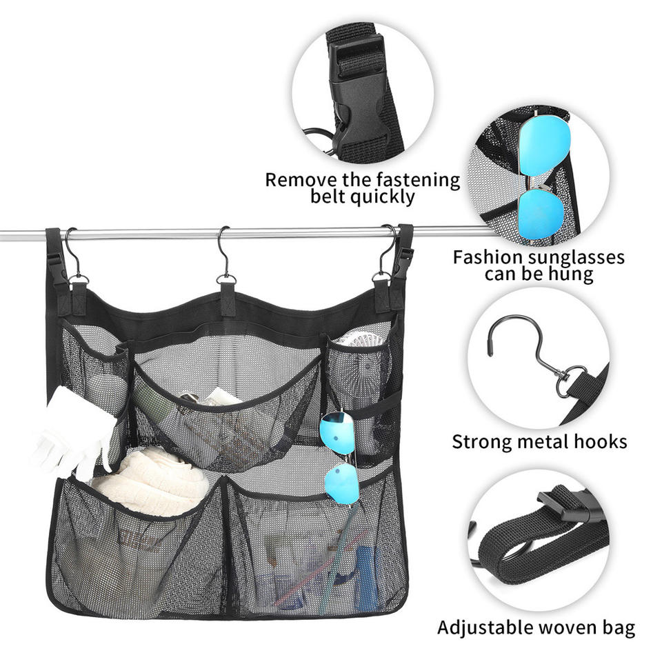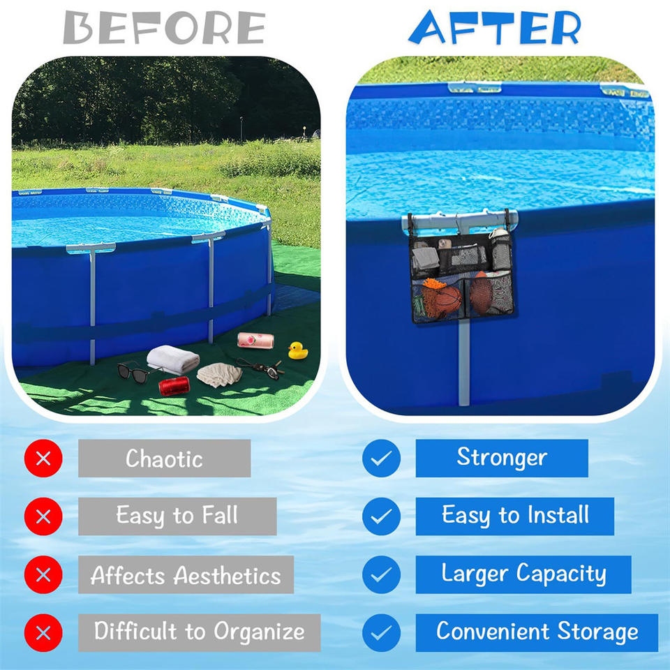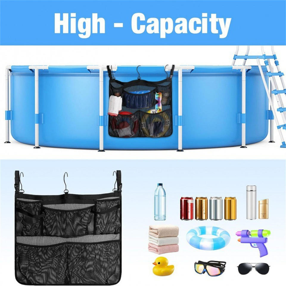 Multifunctional Mesh Storage Bag For Pool Beach Outdoor Use 4-6 Compartments Portable Foldable Black