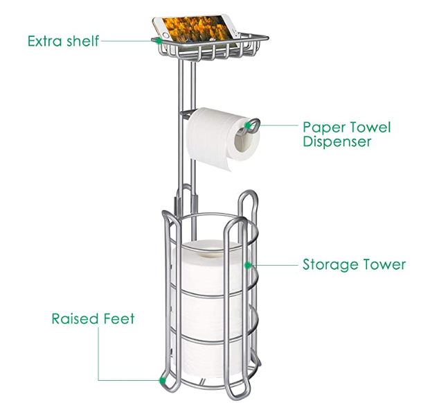 Multifunctional Modern Stainless Steel Metal Free Standing Kitchen Bathroom Toilet Tissue Roll Paper Holder Stand Storage Shelf
