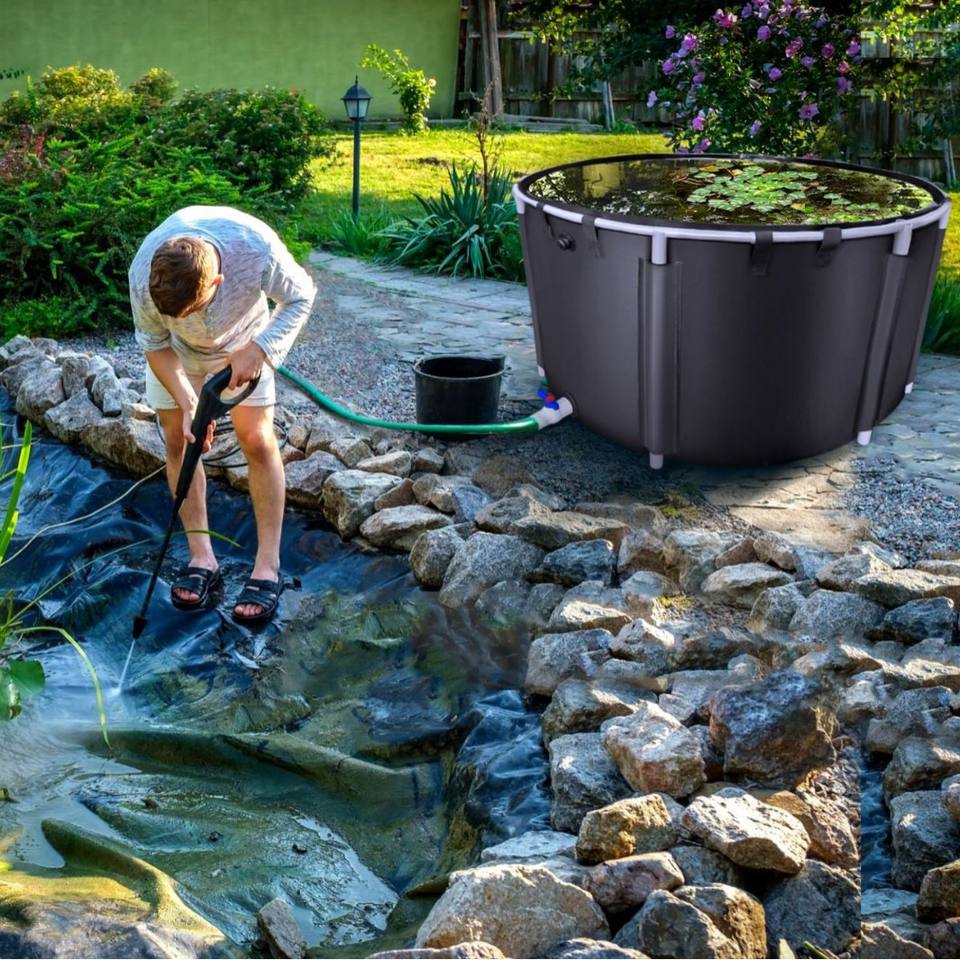 Blue 1320 Gal Capacity Foldable PVC Fish Pond Aquaculture Koi Breeding Tank Stable Frame Drain Valve Goldfish Irrigation Model