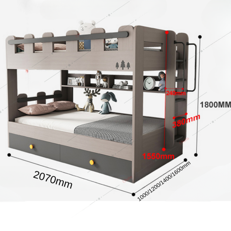 Function:Space-efficient wooden bunk bed with built-in ladder