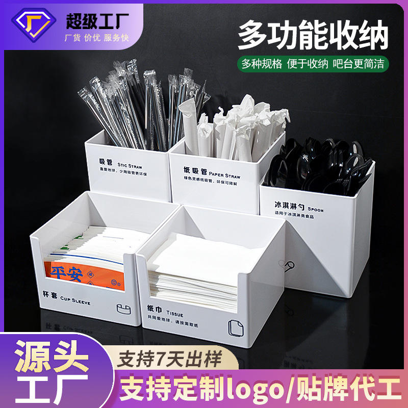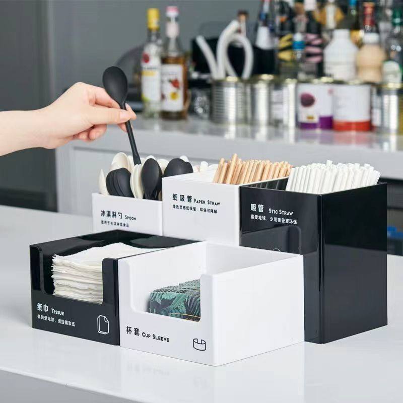 Multifunctional Storage Box For Beverage Shop 4 7 Compartments Rectangle Plastic Table Standing Type White Black