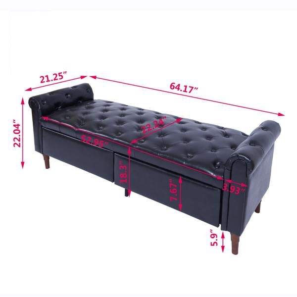 Multifunctional Storage Sofa Stool with PU Leather Armrests Black