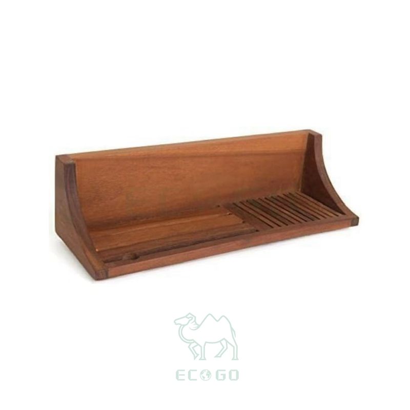 Multifunctional Straight Teak Shower Shelf for Bathroom