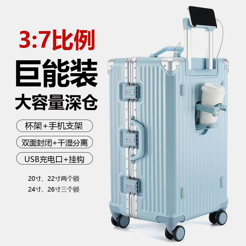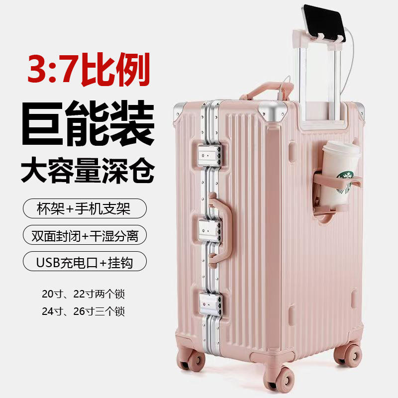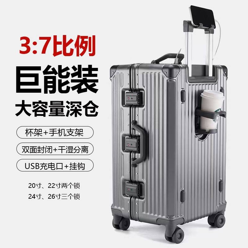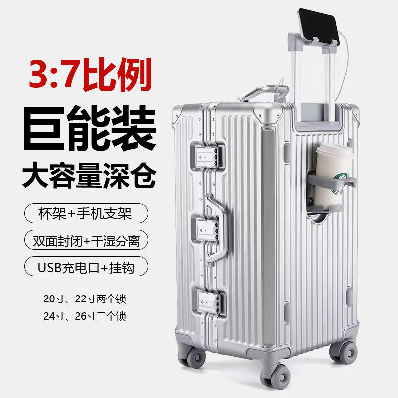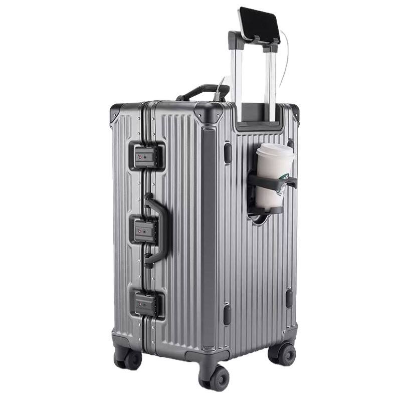 Multifunctional Trolley Case 20 Inch With Cup Holder And Phone Stand For Travel Unisex Solid Color Spinner Wheels Rivet Design