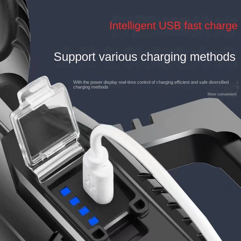 Multifunctional USB Rechargeable Outdoor Emergency Strong Brightness Searchlight Long Range LED Flashlight Handheld Torch Light