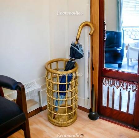 Multifunctional Umbrella Storage Bucket Natural Decorative Bamboo Rattan Umbrella Holder Stand for Indoor and Outdoor Rounded