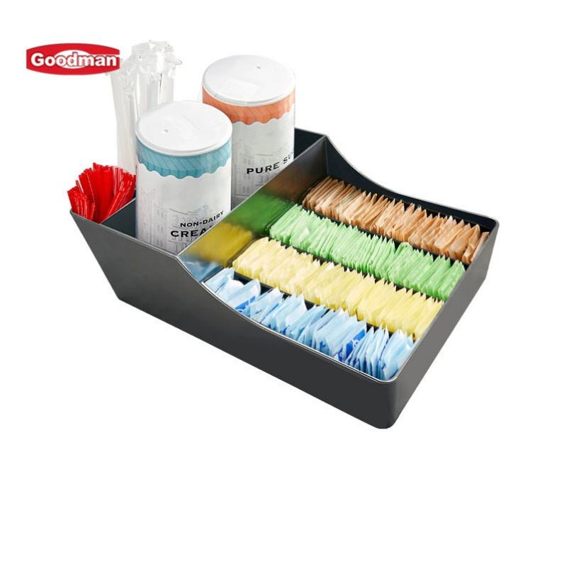Multifunctional Waterproof PP Plastic Modern Tea Bag Dispenser 3 Trays Coffee Shops Holds Straws Sweeteners Utensils Storage