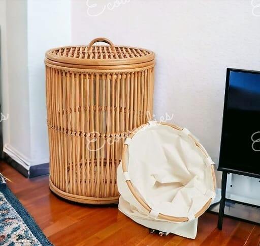 Multiple Purpose Home Decoration Dirty Cloth Laundry Basket With Lid Cylinder Round Wicker Laundry Storages & Organization