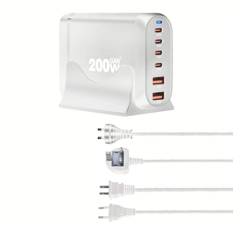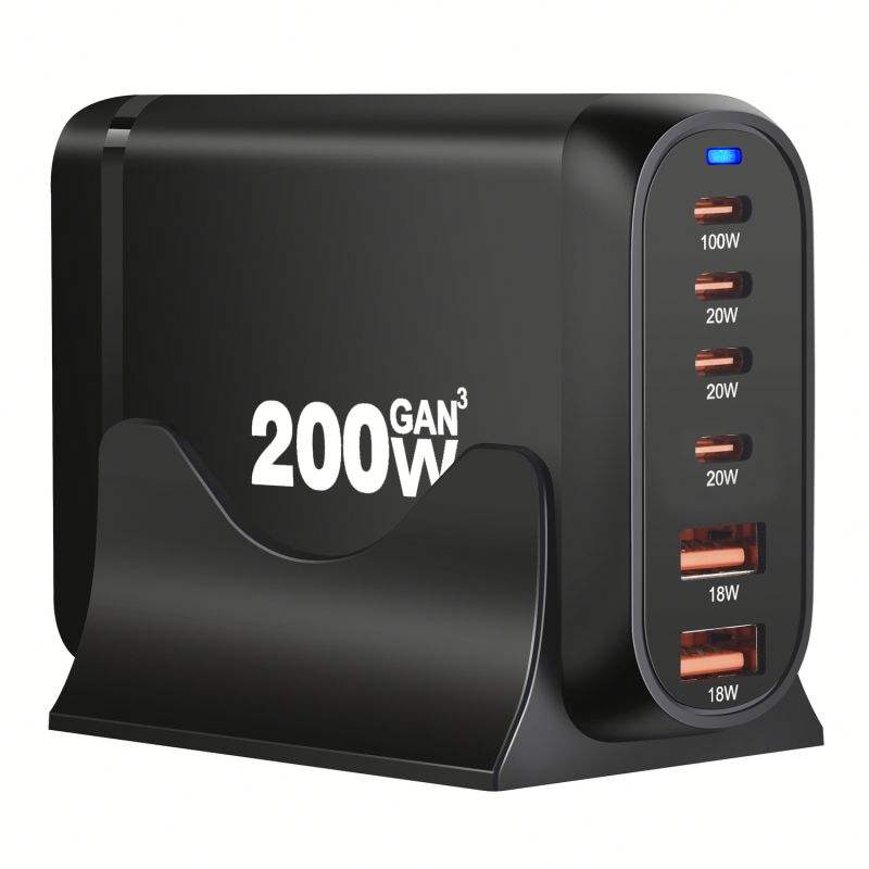 Multiple USB Desktop 200W GaN Charger 100W 20W 18W PD Type C Fast Charging Adapter for Laptop US EU UK AU Plug Phone Charger